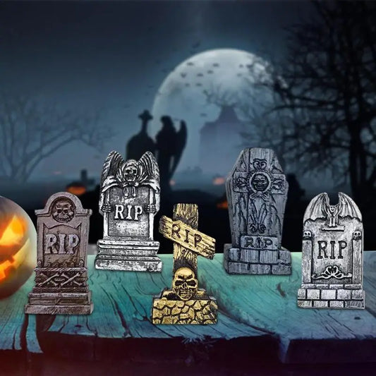 5 estatuetas jardim miniatura Halloween RIP - decoração lápimini estatuetas resina