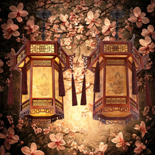 Luminária de madeira retrô Lustre antigo chinês, luminária pendente de lanterna palácio