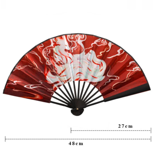 Leque Grande De Bambu Oriental 30cm Aberto e Leque Grande De Bambu