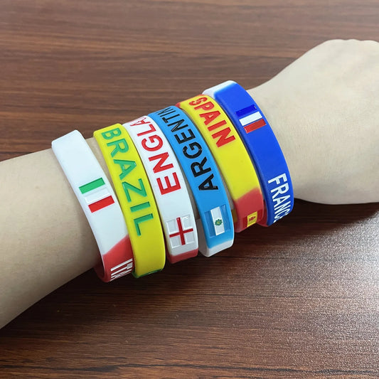 2 Peças Pulseira de silicone esportiva gravada com bandeira do país para homens