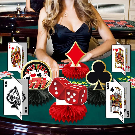 Enfeite de Mesa Cassino 9 Peças de decoração de festa de cassino, centros de mesa