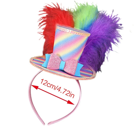 Chapéu alto plano colorido Faixa de cabeça para adultos e crianças, pena e festa
