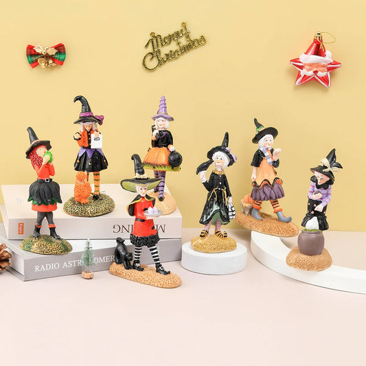 Novo halloween bruxa boneca figura estátua resina abóbora elegante mini bruxa