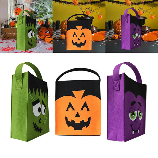 Conjunto de 1 sacolas de Halloween, baldes de feltro de doces ou travessuras, sacolas
