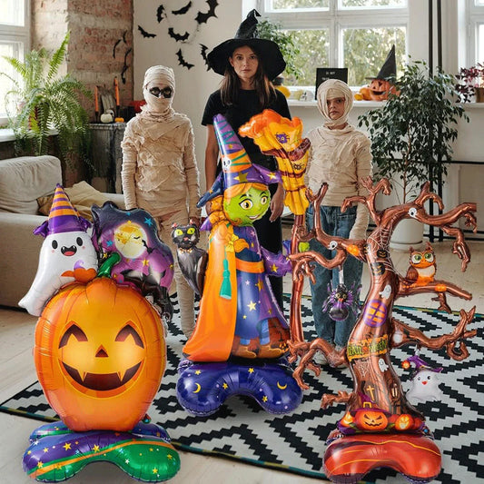 1 Balões de Halloween, 52" enormes, árvore fantasma, abóbora, bruxa, morcego, aranha