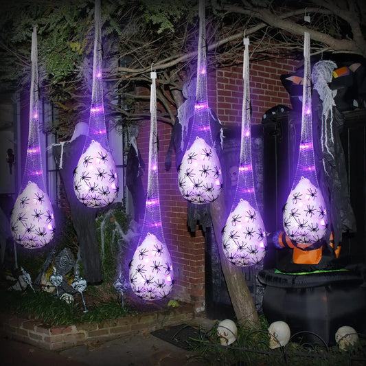 Decoração de Halloween para pendurar sacos de ovo de aranha iluminados, 3 peças sacos