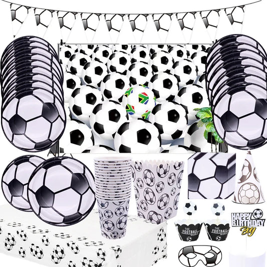 Conjunto de utensílios de mesa para festas de futebol, copos e guardanapos, utensílios