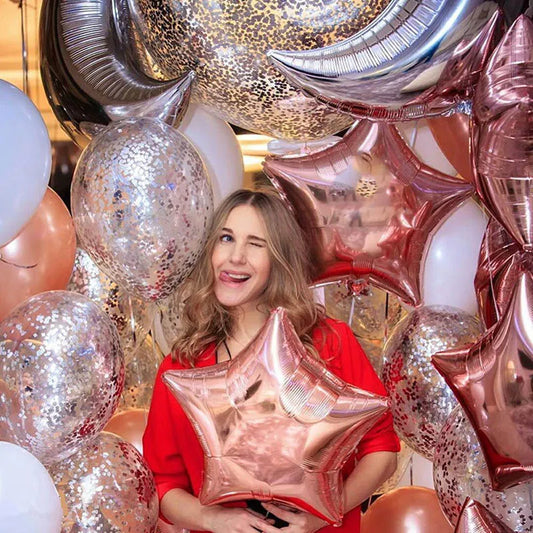 Balão Kit Buquê Estrela e Coração 10 Peças (Rose Gold)