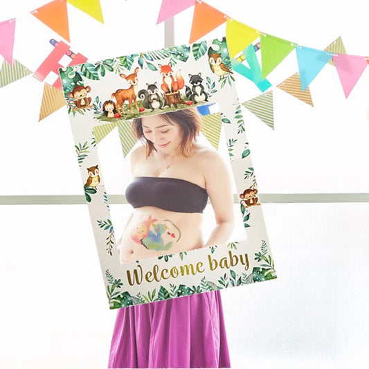Quadro fotografia decoração de chá de bebê com tema de selva, gênero neutro meninos