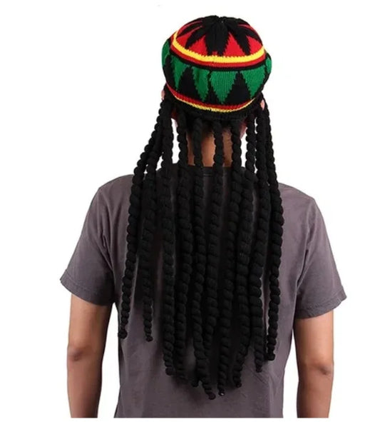 Chapéu Rasta com trava de pescar como cabelo preto longo – Peruca Rasta acessório