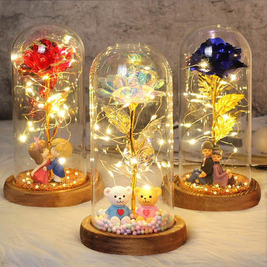 Beleza e besta rosa flor com Urso de pelúcia rosa urso em cúpula de vidro decoração