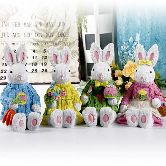 Esculturas de estátuas de coelho de jardim, adorável resina de páscoa camisola
