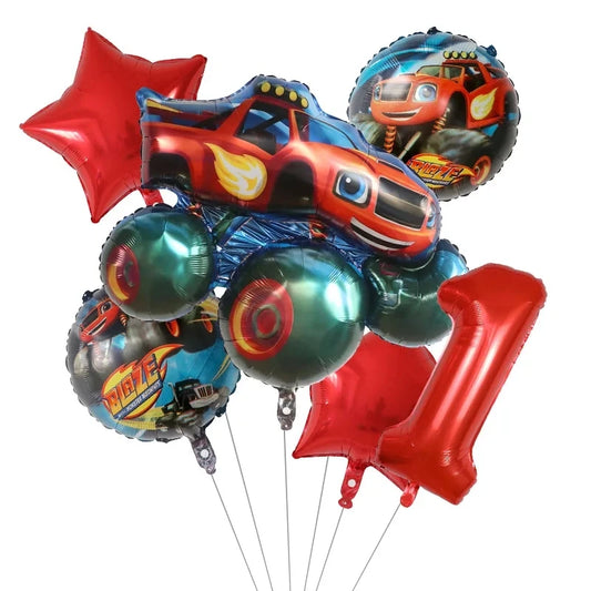Monstro balões carro dos desenhos animados feliz aniversário decoração corrida
