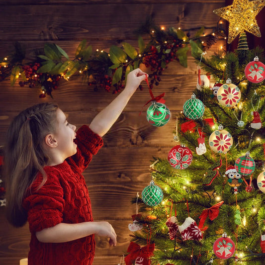 Bolas de árvore de Natal em ouro verde vermelho e verde, decoração bola brilho à prova