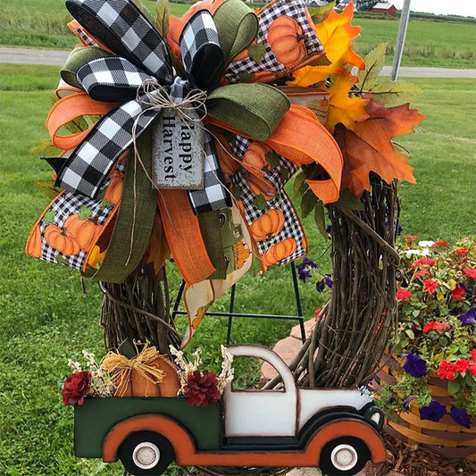 Guirlanda de porta de abóbora de outono, grinalda em forma Carrinho de abóbora
