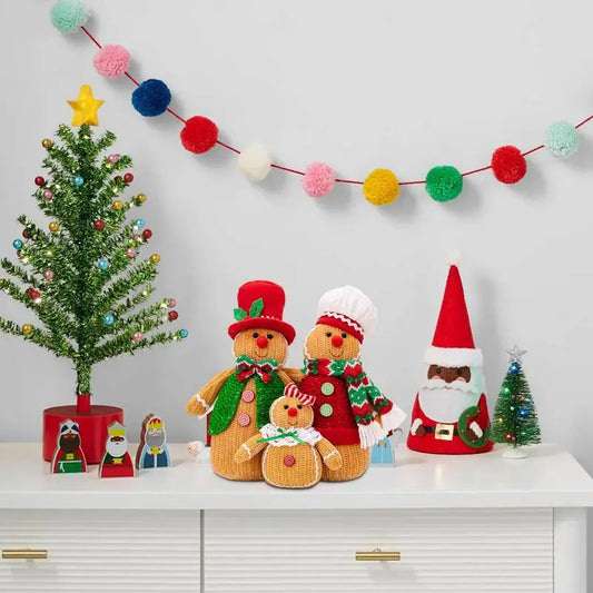 Trio Decoração Bonecos Natal gengibre Noel Boneco De Neve 30cm