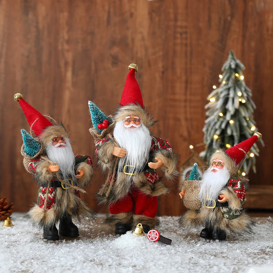 Papai Noel cortador de lenha e Papai Noel Boneco Casaco Colorido Decoração Natal 30cm