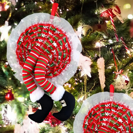 Pernas recheadas de duende Natal,Vermelho Verde Listrado Pelúcia Elf Pernas Natal