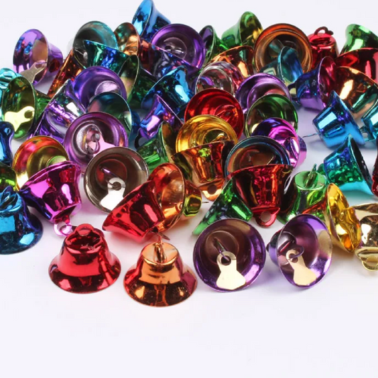 Sino multicoloridos 50 peças de armários de metal de 0,43 polegadas para Natal, sinos