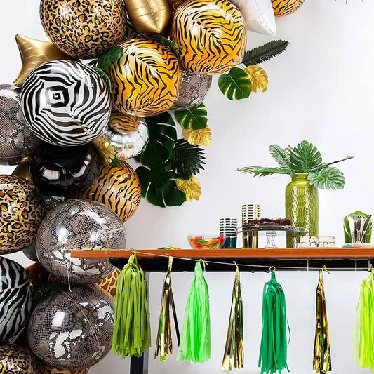 Selva Safári tema folha balão 4D animal print balão tigre girafa decoração