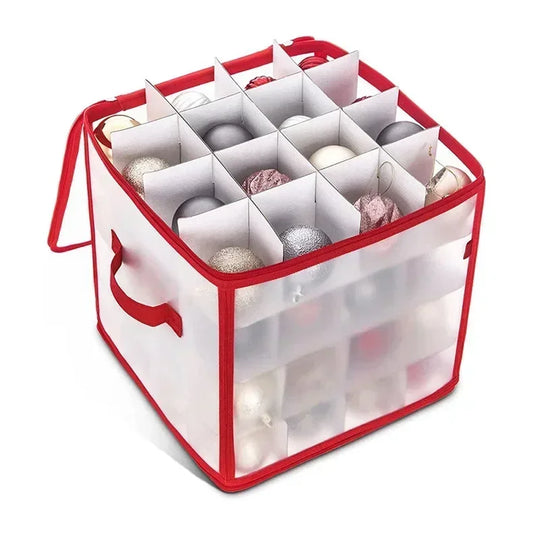 Translúcido PP Caixa de armazenamento de enfeites de Natal 64 grades Recipientes
