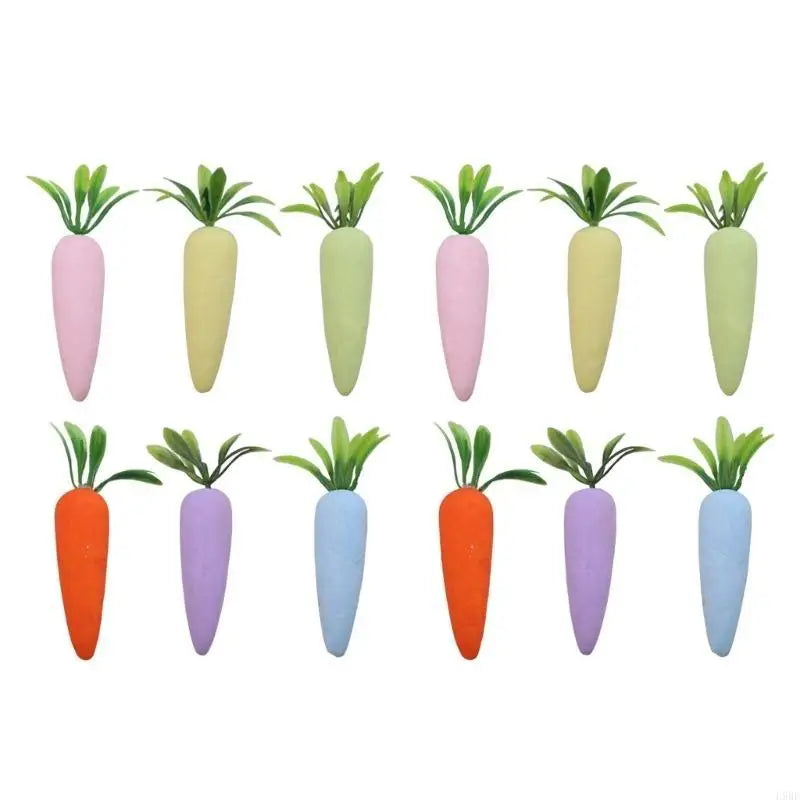 Melhorando a decoração da sua casa com as Cenouras Artificiais Realistas, conjunto de 12 cenouras coloridas realistas, ótimo para adicionar um toque de diversão a qualquer ambiente.