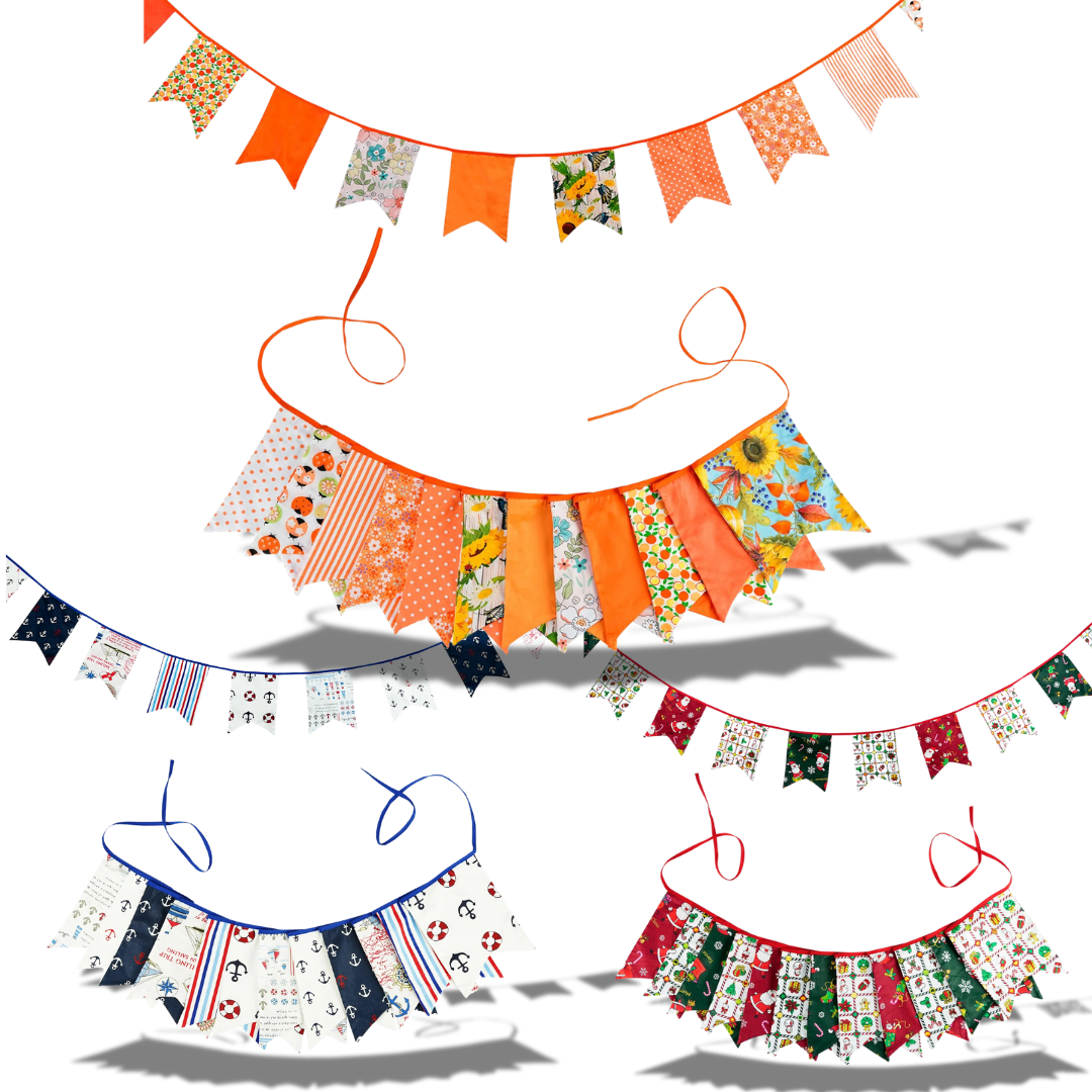 Kit de bandeirinhas festa junina 3.5 mt tecido multicolorido bandeirola 12 bandeira