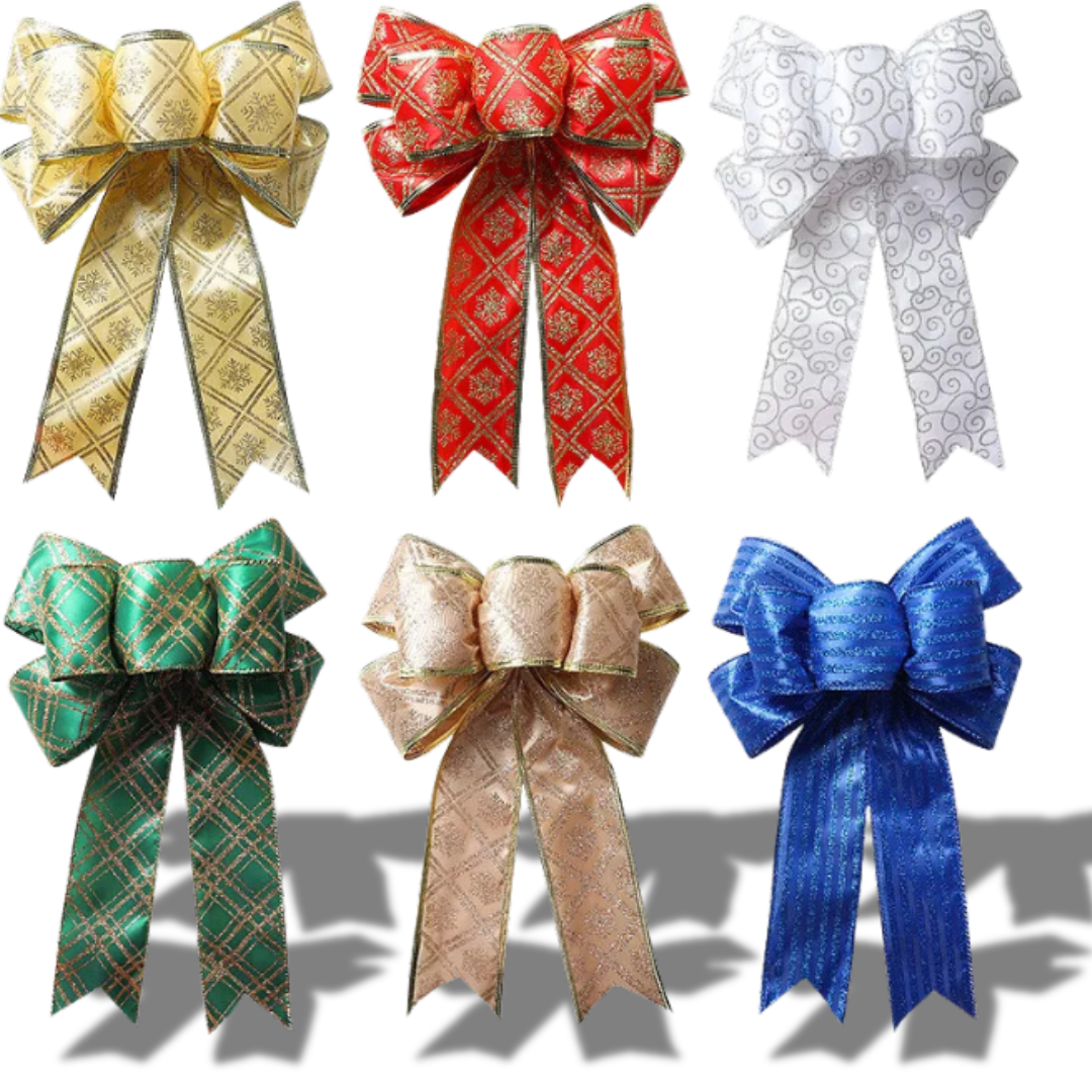 35×24cm Novo nó de laço floco de neve xadrez nó de laço decoração de árvore de natal atmosfera de feriado grande borda dourada nó de laço decoração de presente.Nota:
