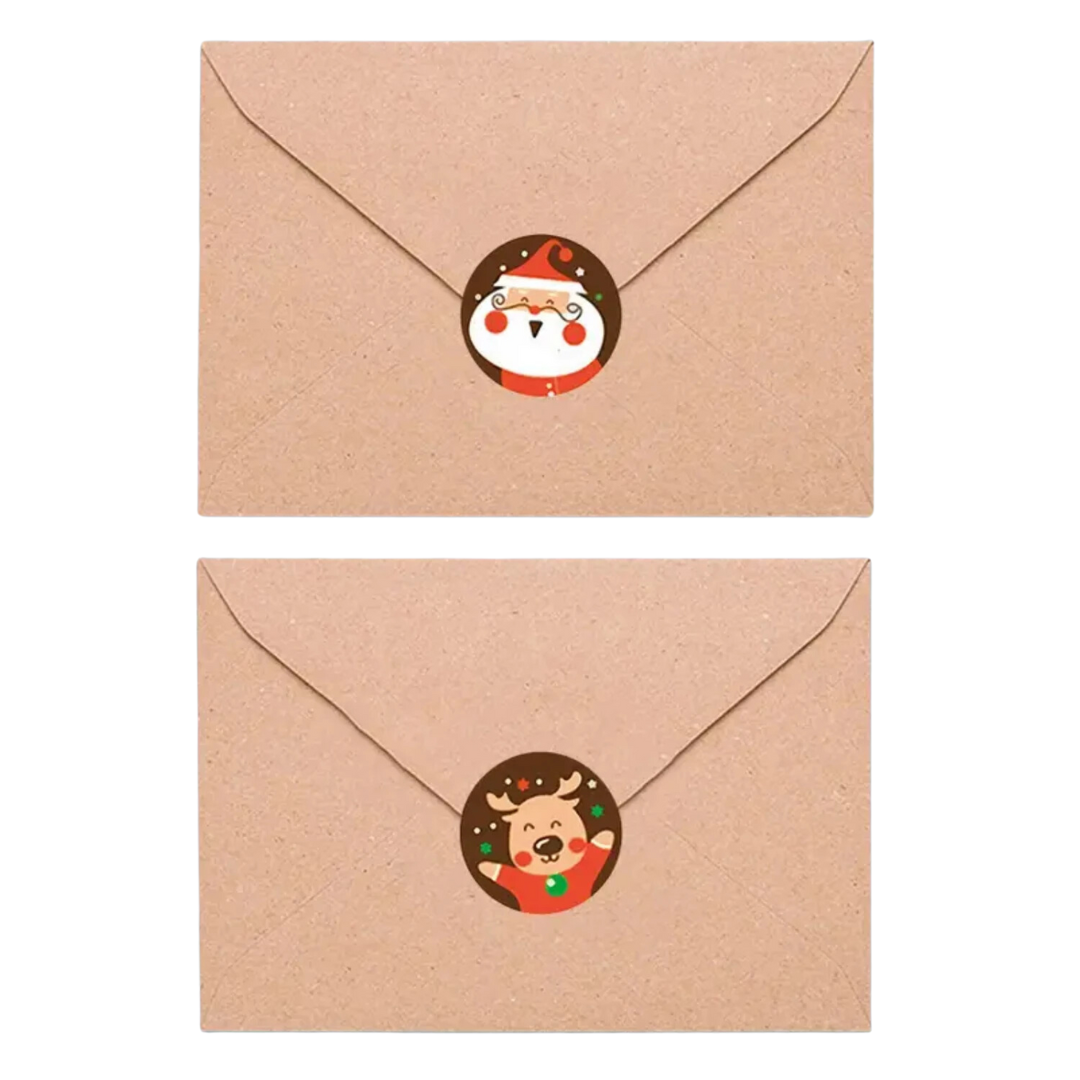 500 peças de envelopes adesivos de Natal, adesivos redondos de 2,5 m, 4 estilos