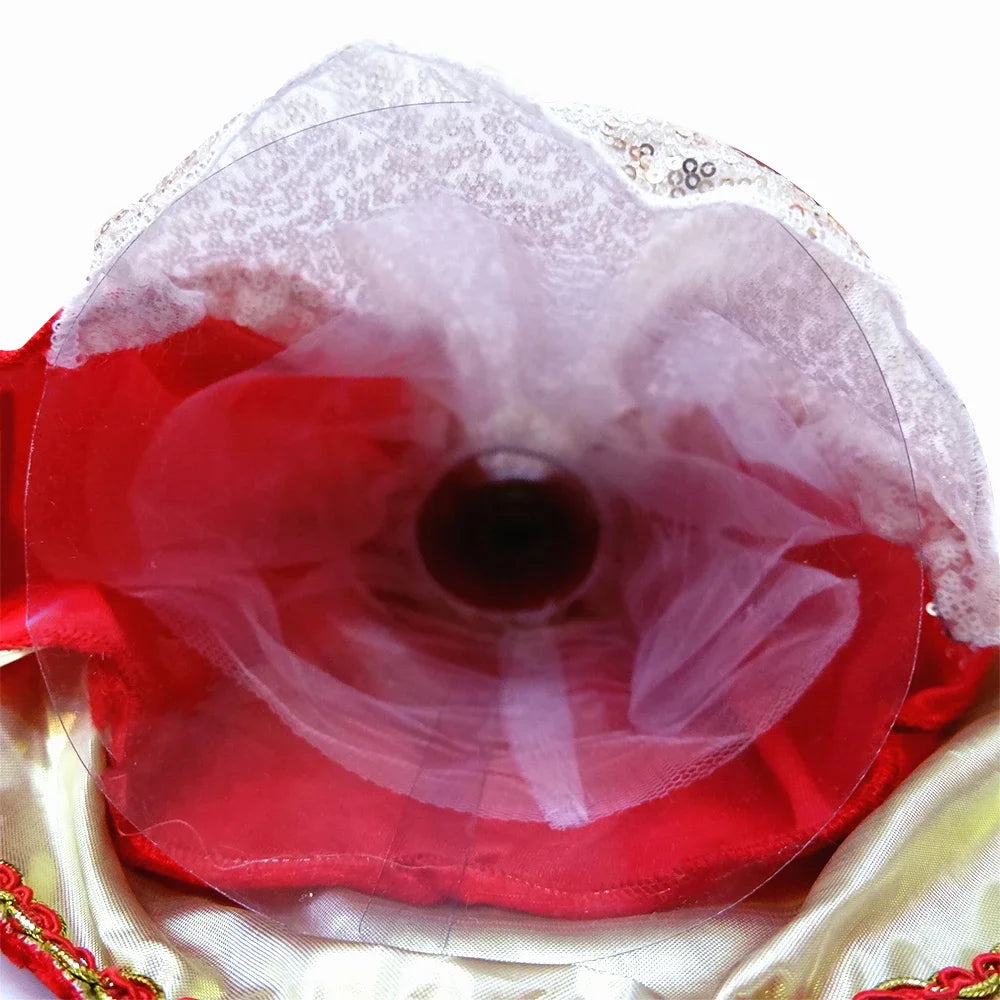 Este anjo trouxe paz e tranquilidade ao Natal. Seu elegante vestido vermelho e lantejoulas brilhantes de ouro puro, um par de asas de anjo brancas nas costas mostram sua nobreza.
