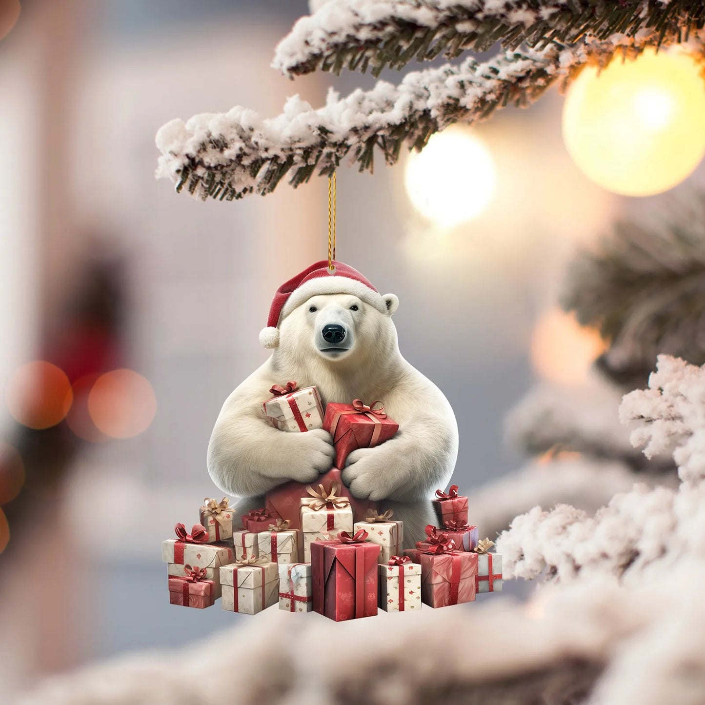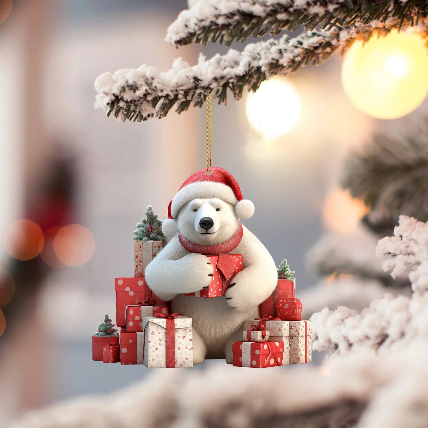 Bonito urso polar cena de natal decoração de natal pendurado decoração: