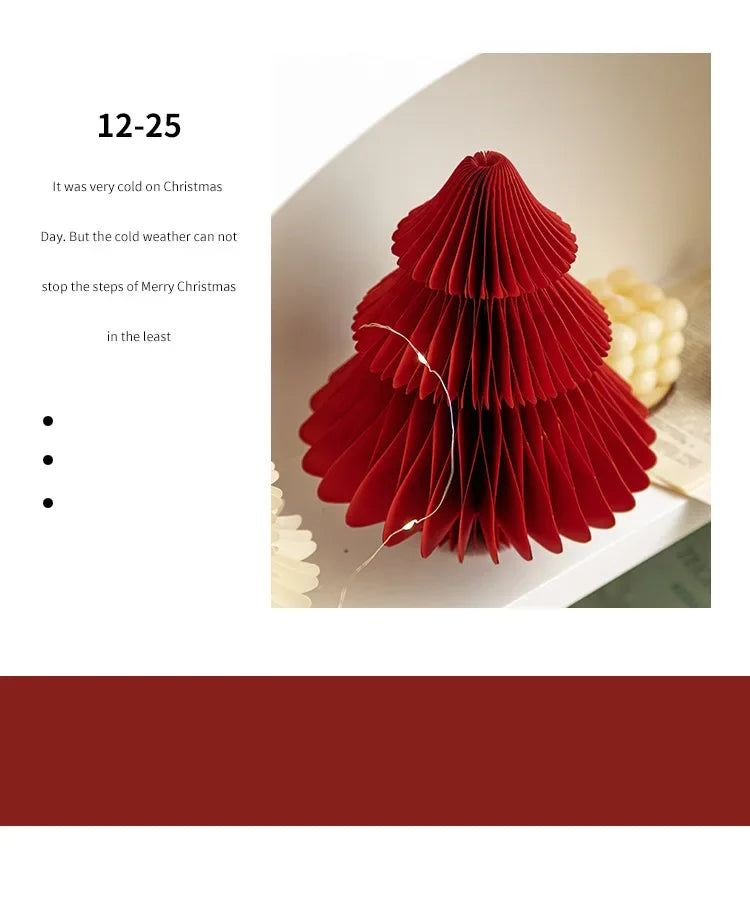 Crie uma decoração de Natal criativa e elegante com a Árvore de Natal de papel em favo de mel. Com seu design dobrável de origami, esta mini árvore trará um charme exclusivo para seu espaço doméstico durante as festas. Transforme sua casa em um refúgio natalino com este enfeite de Natal luxuoso e sofisticado.
