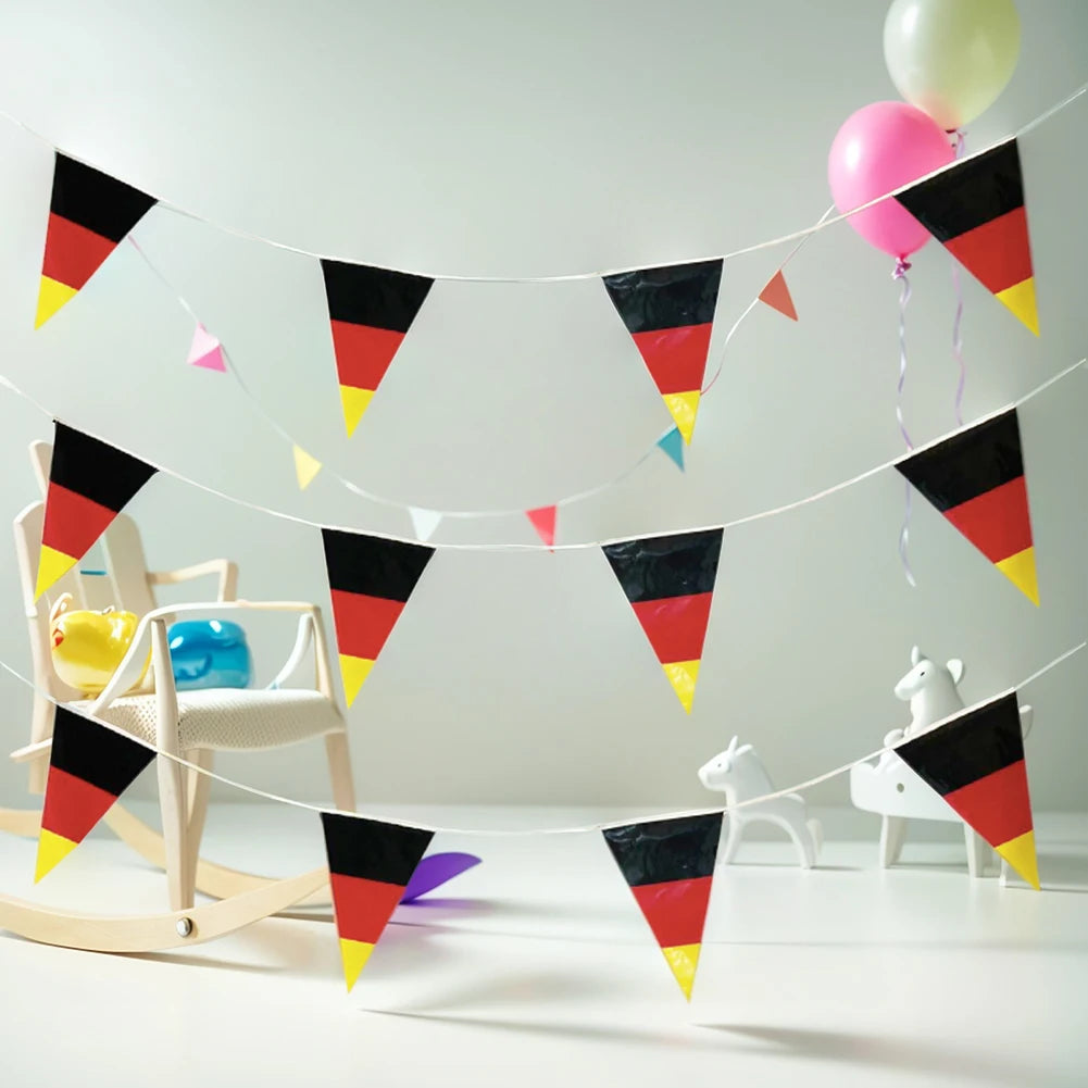 2. Material: Construídas com PE de alta qualidade, nossas bandeiras alemãs são projetadas para suportar os rigores da exposição externa, resistindo ao desgaste e mantendo suas cores brilhantes sem desbotar.