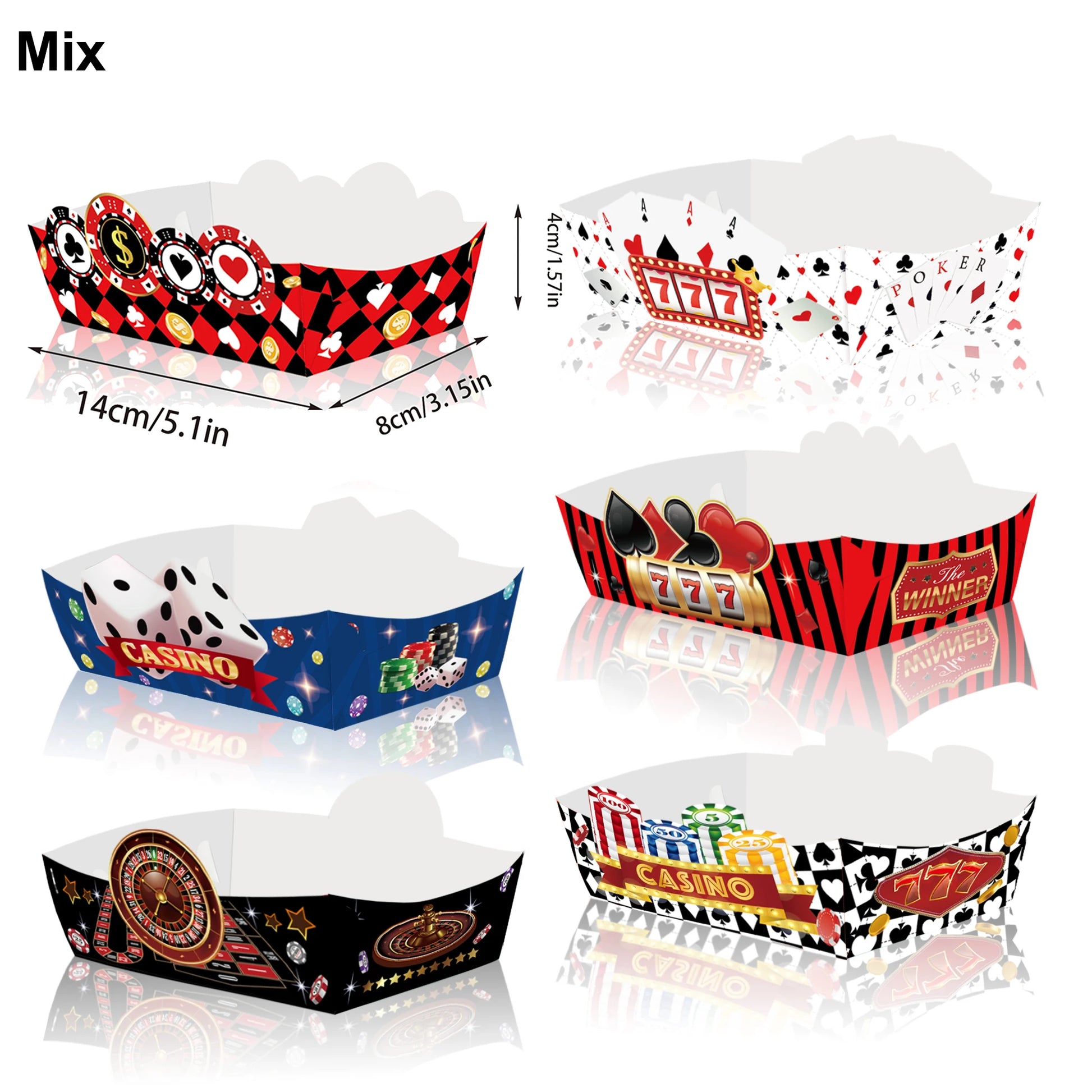 Bandejas de comida de papel festa de cassino, preto, vermelho, estampado e descartável