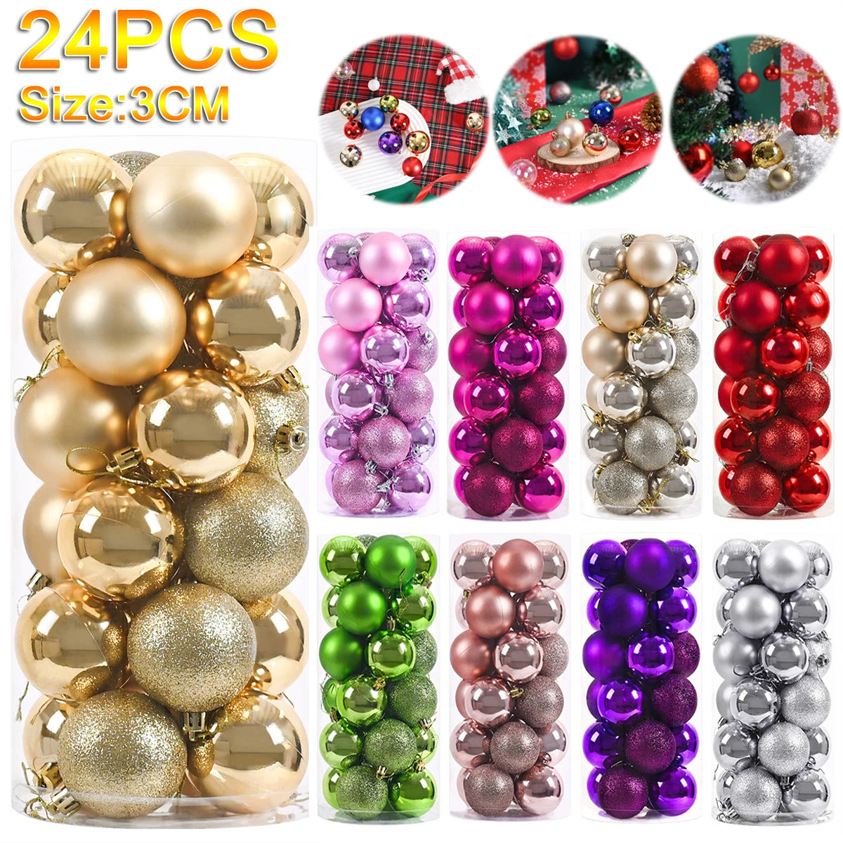 Bola de Natal 24 peças de enfeites de bolas de Natal, enfeite de Natal para árvore de Natal