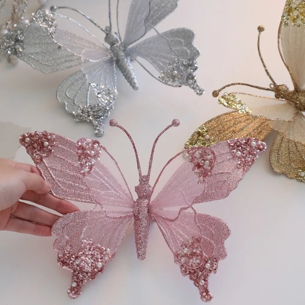 Bola de Natal borboleta Enfeite De Árvore De Natal Cintilante Com Borboleta Simulada