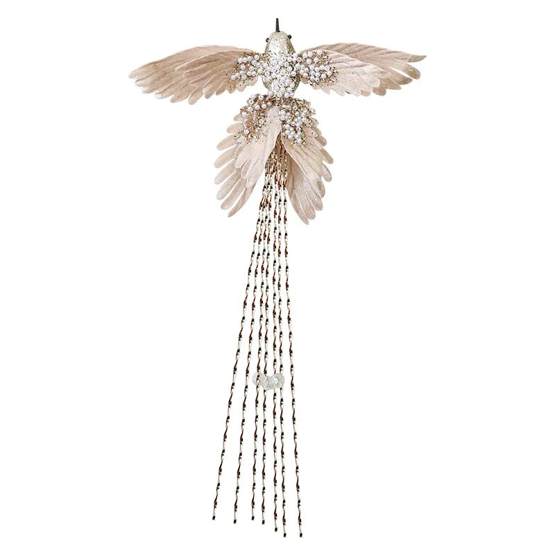 Adornados com glitter e pérolas, este enfeite de Natal com beija-flor traz um toque de alegria de inverno para sua árvore. Esses detalhes festivos complementam perfeitamente o charme natural do beija-flor.