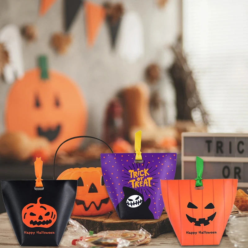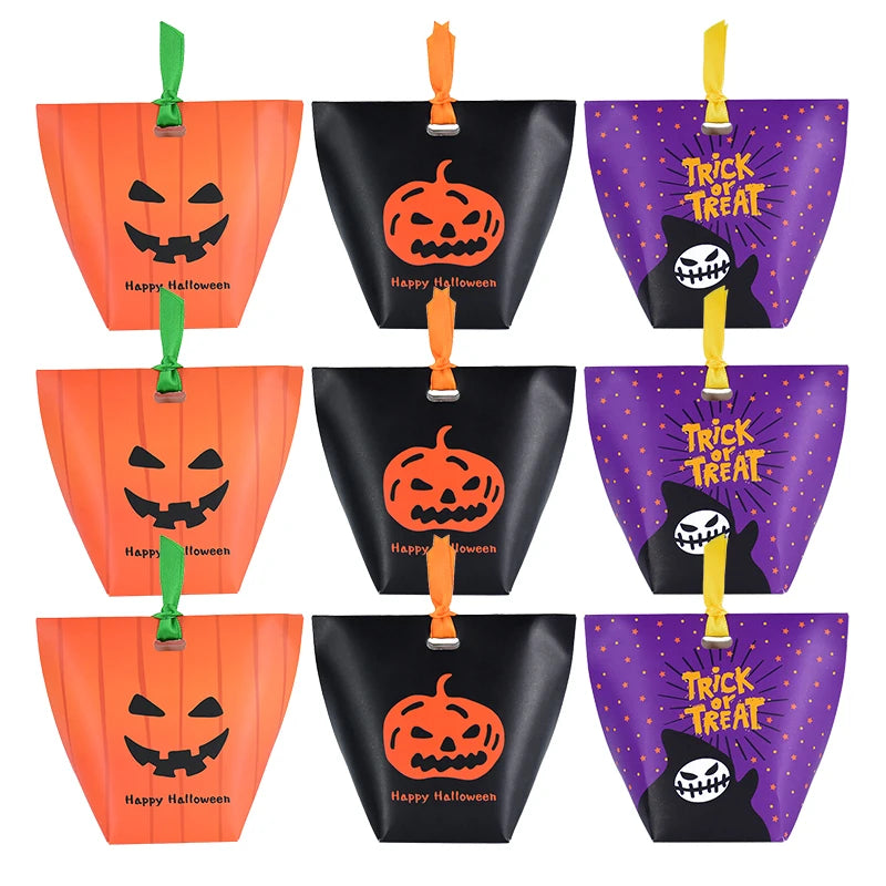 Bolsa de abóbora de Halloween, 10 peças, bolsa de doces, bolsa de doces divertida laranja
