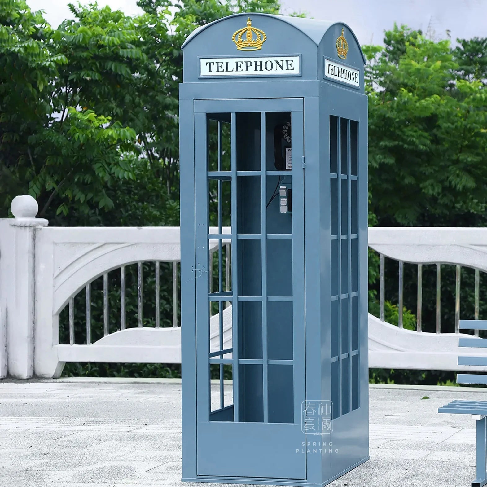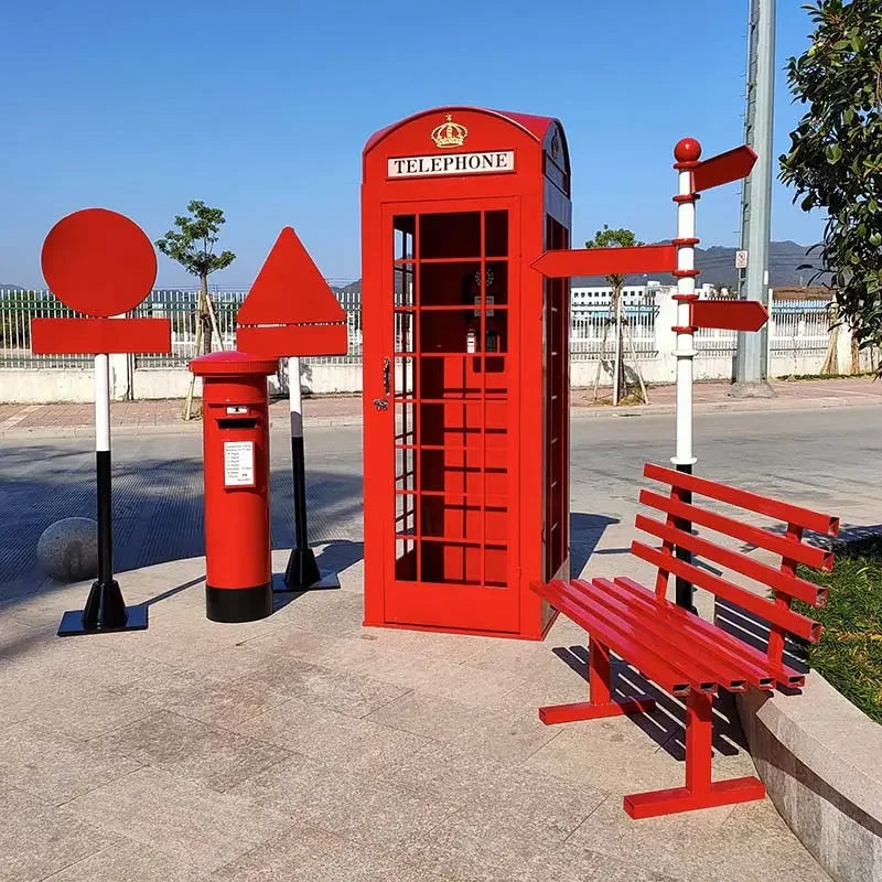 Cabine de telefone antiga vintage, enfeites de festa temática de casamento, cabine de telefone.