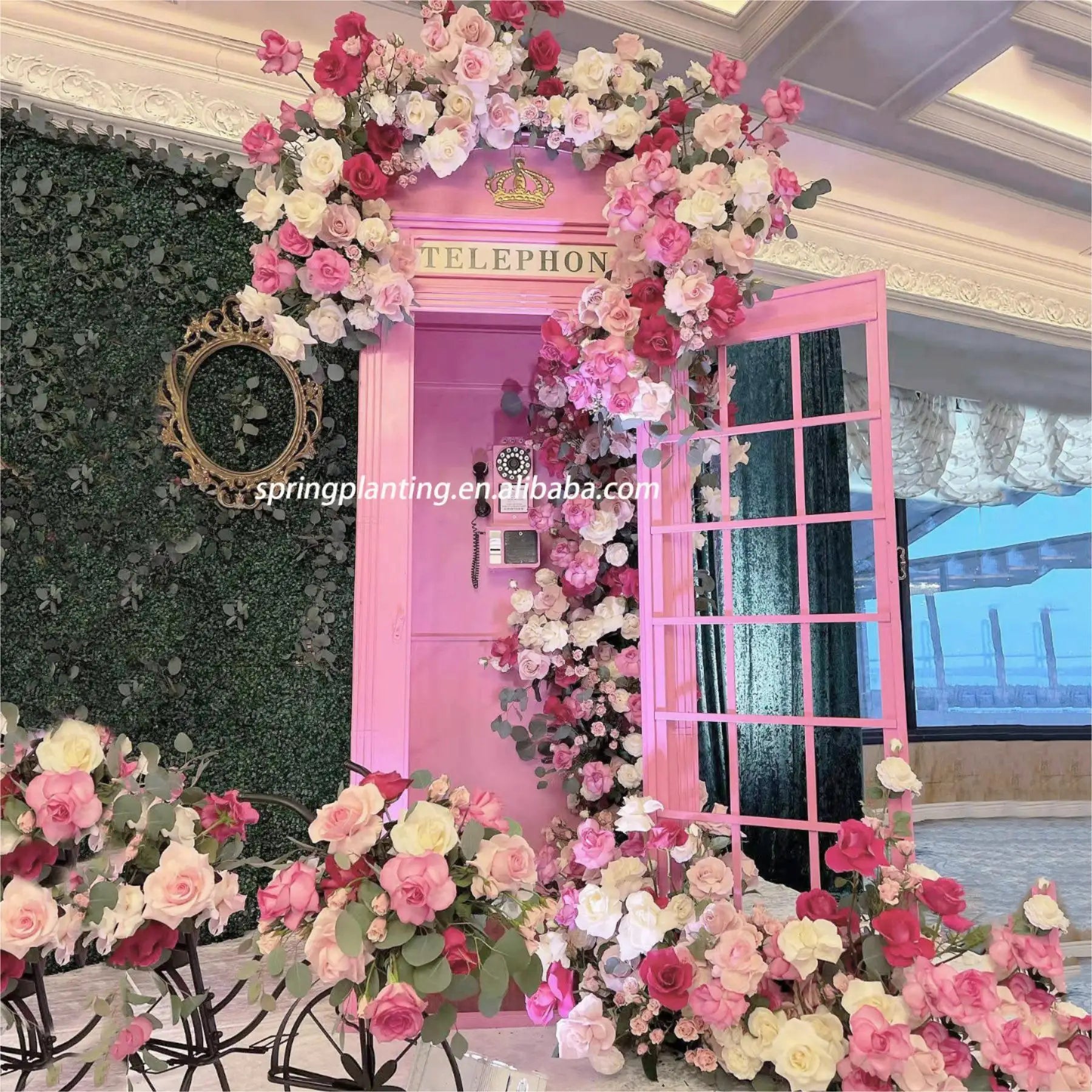 Cabine Telefônica Temática Tamanho Real Rosa Flores Londres