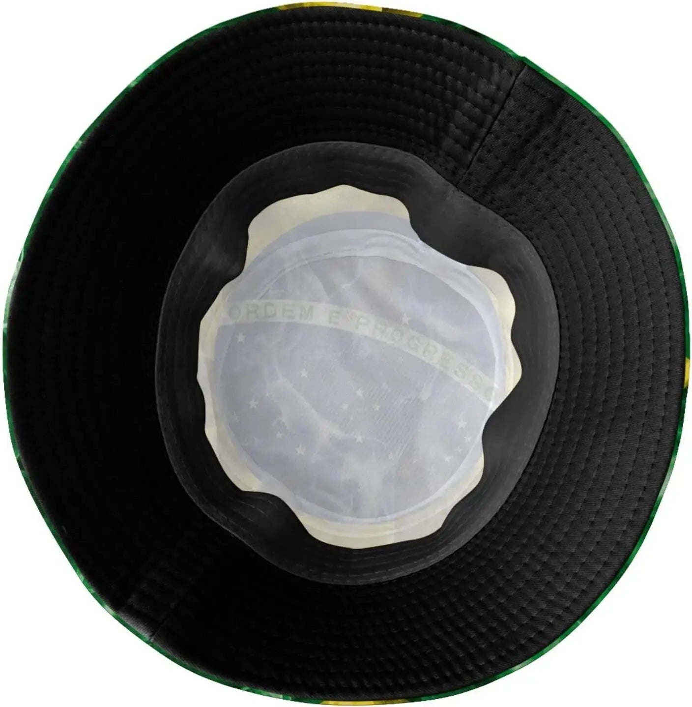 Descrição interna do chapéu: Para padrões mais escuros, a borda interna do chapéu é preta; para padrões mais claros, a borda interna do chapéu é branca.
