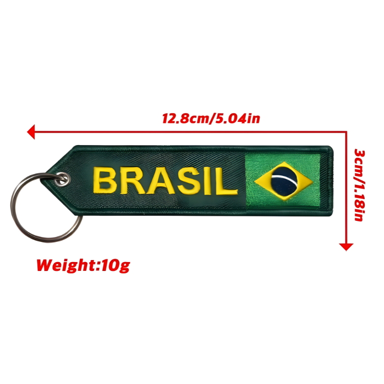 Exibe a vibrante bandeira brasileira em cada lado do chaveiro.