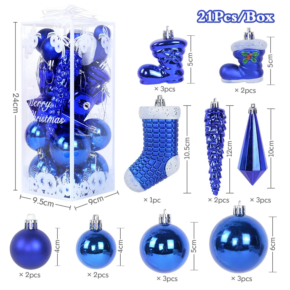Conjunto de pingentes de bolas de Natal, vários formatos, 21 peças, pacote com 21