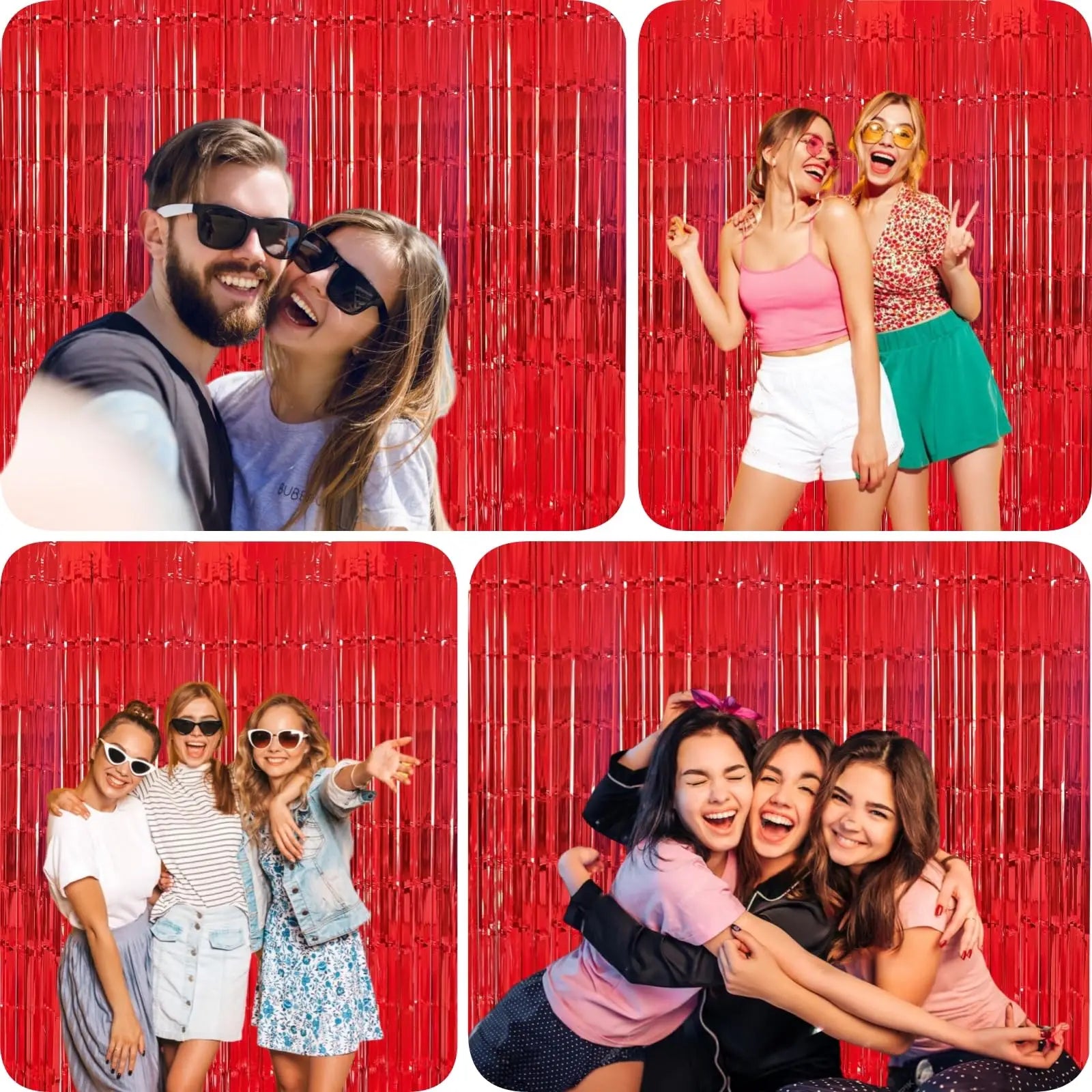 Cortina flamengo Pacote com 2 cortinas de franja metálicas de folha de tinsel vermelhas