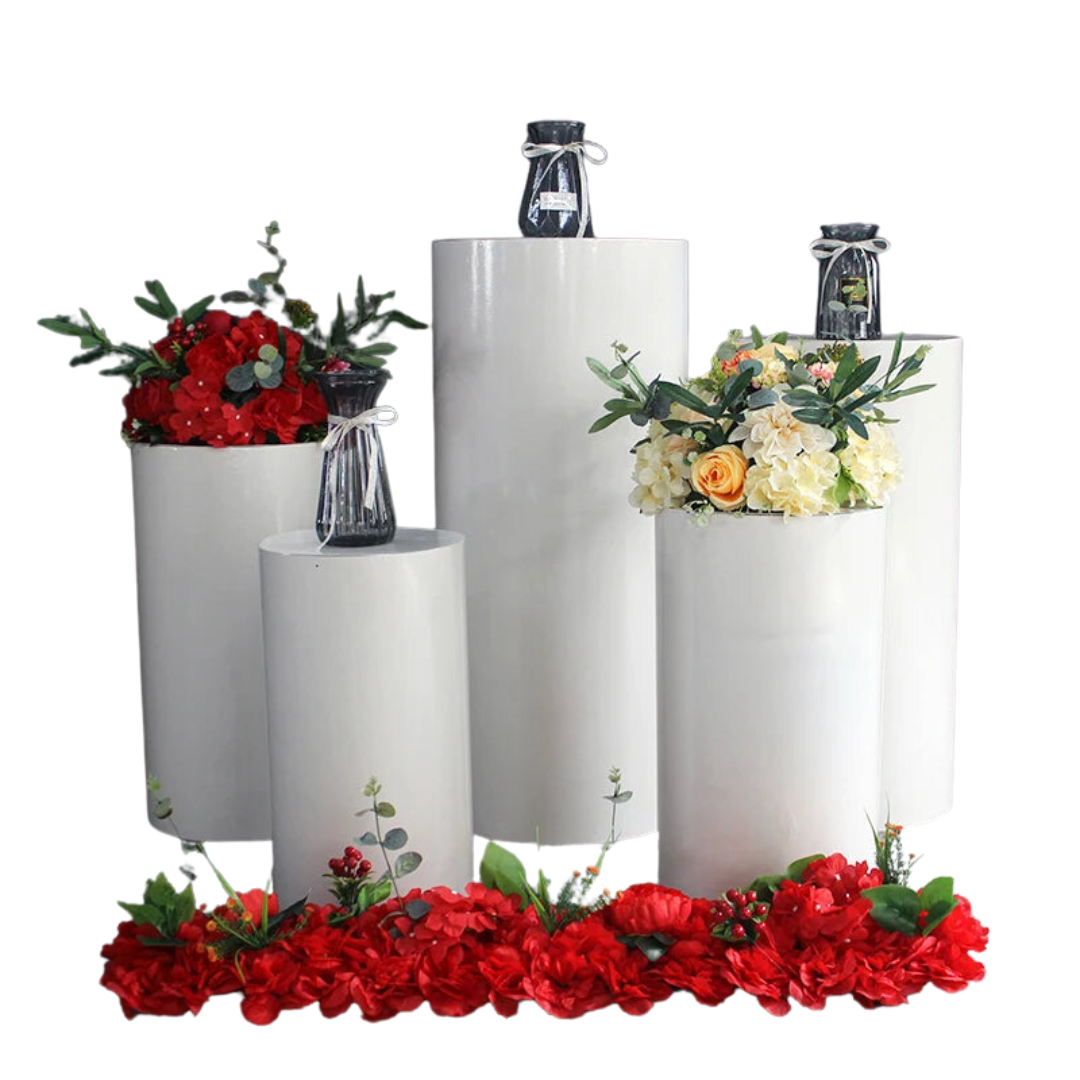 Eleve sua decoração com o Suporte De Pedestal De Cilindro. Feito com 3/5 peças de cilindro redondo, esse suporte é perfeito para exibir vasos ou decorar bolos em eventos especiais. Com seu acabamento em branco ouro, o suporte traz um toque sofisticado e elegante para qualquer ocasião. Adicione um toque de arte e glamour à sua decoração com esse item exclusivo.