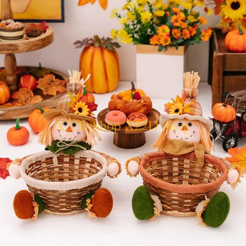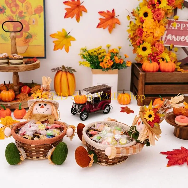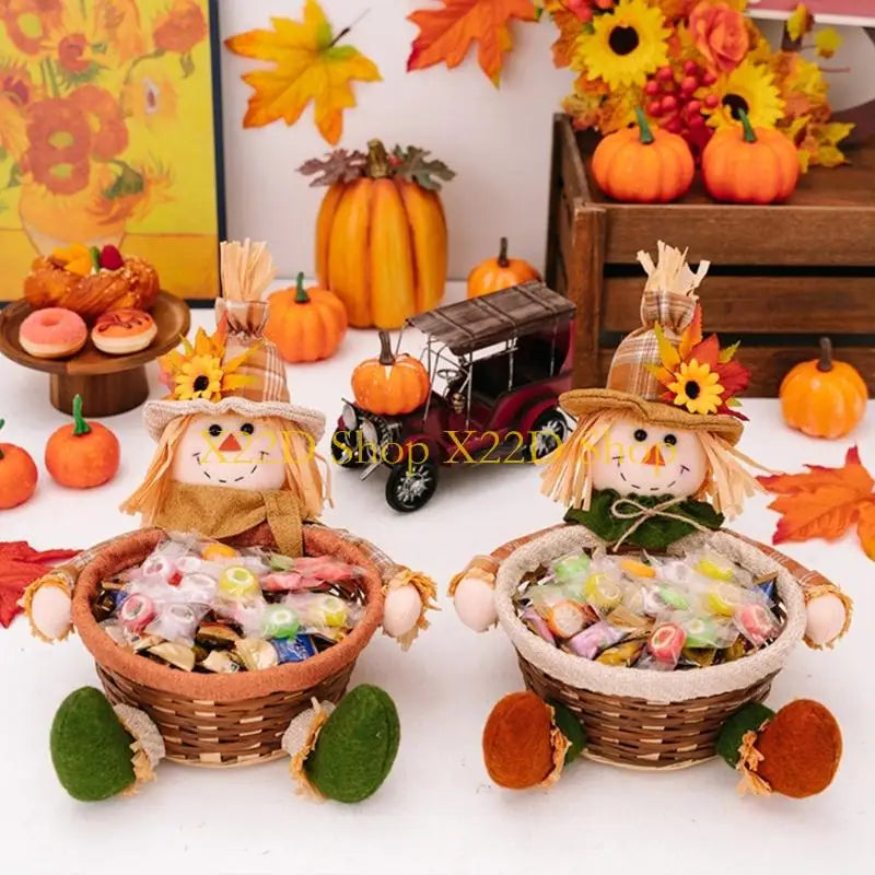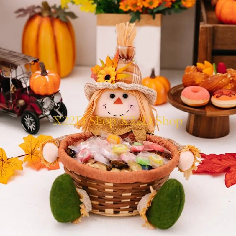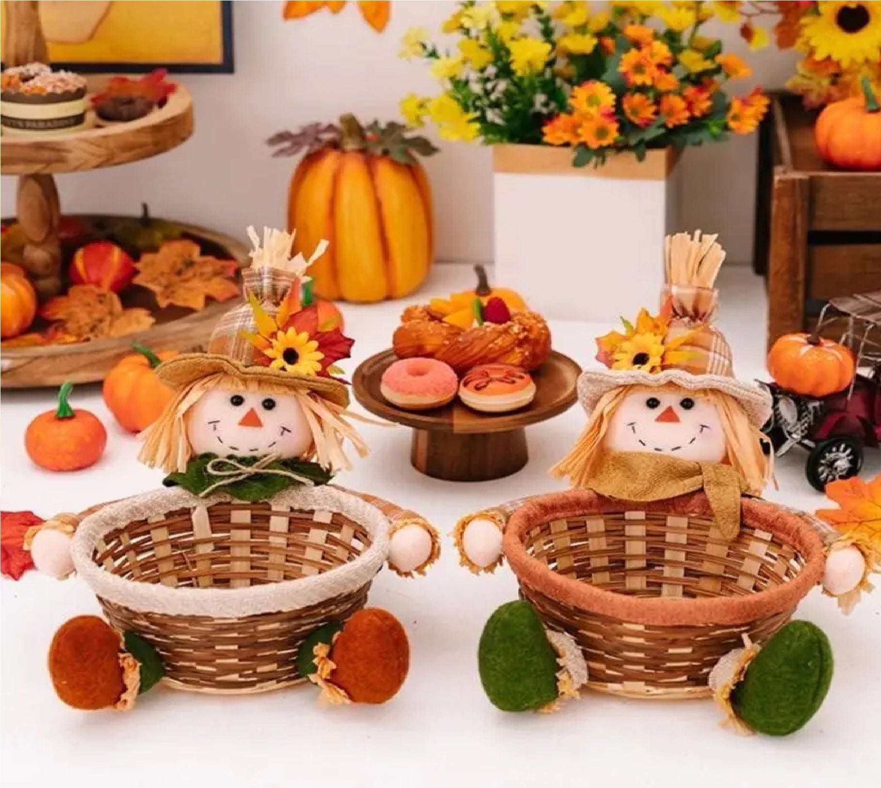 Comemore a temporada de colheita com nossa cesta de doces de espantalho de ação de graças.
