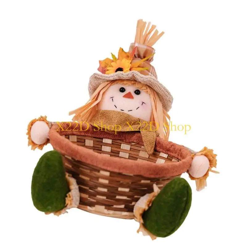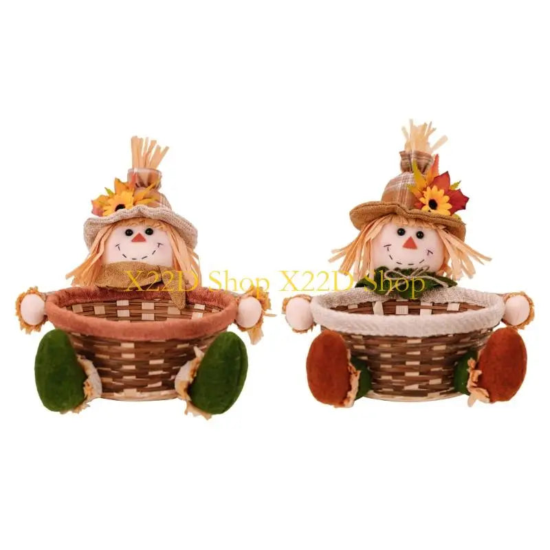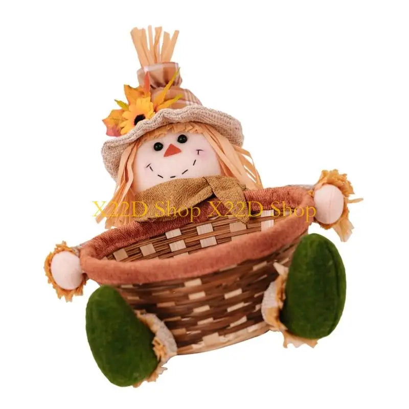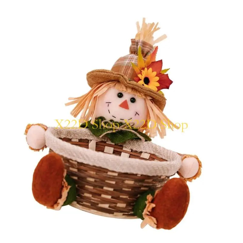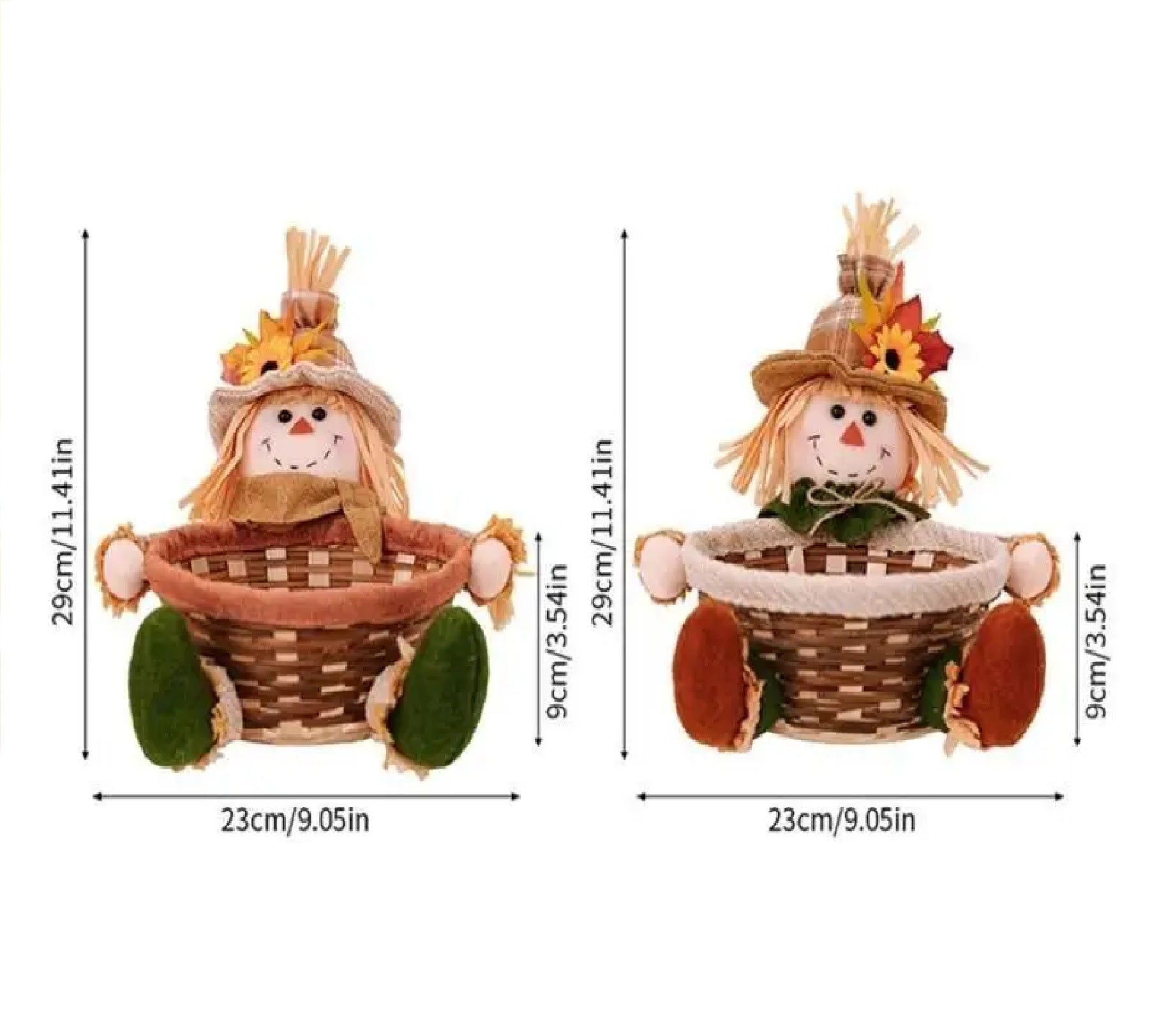 Feita com cuidado, esta cesta em forma de espantalho de design masculino adiciona um toque de estilo à sua decoração de feriado, mantendo seus doces cuidadosamente embalados.