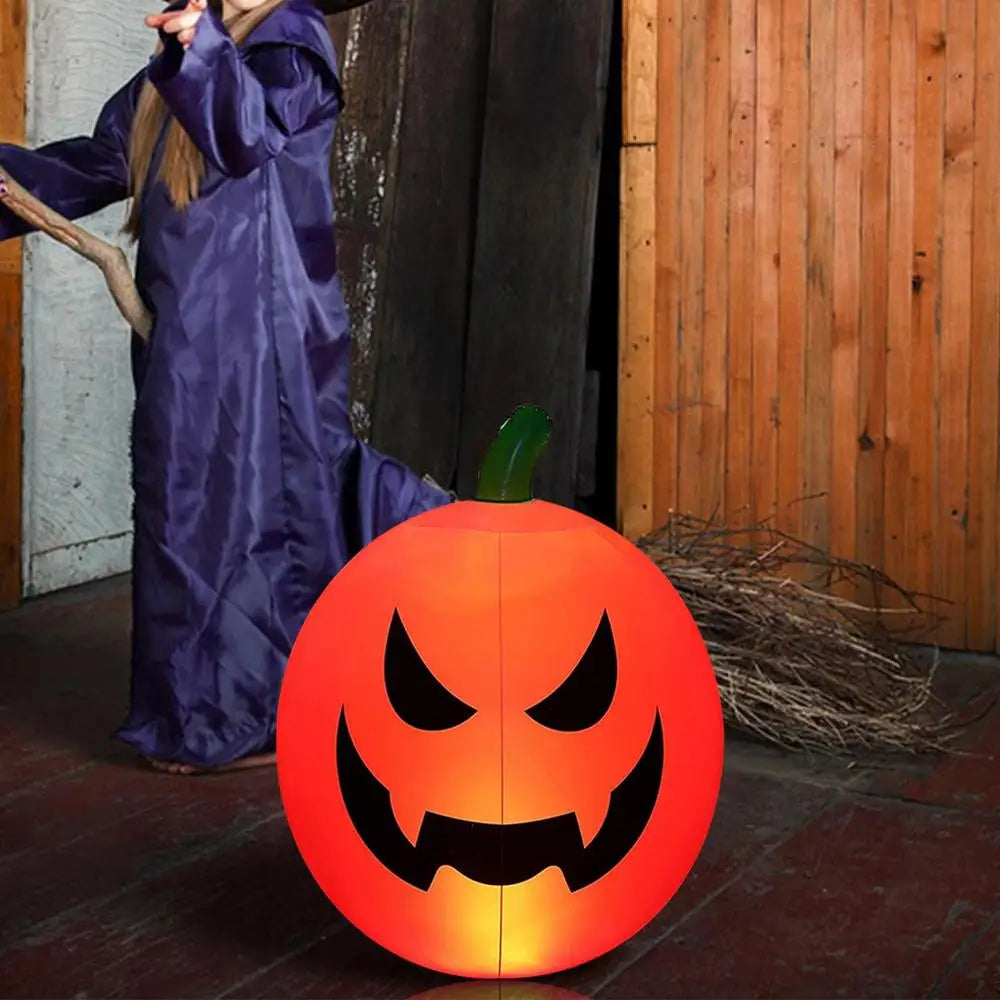 Decorações de abóbora infláveis de Halloween Decorações de abóbora infláveis assustadoras para exterior com luzes LED alimentadas por bateria.