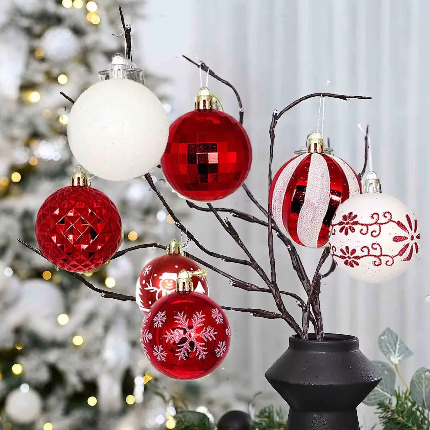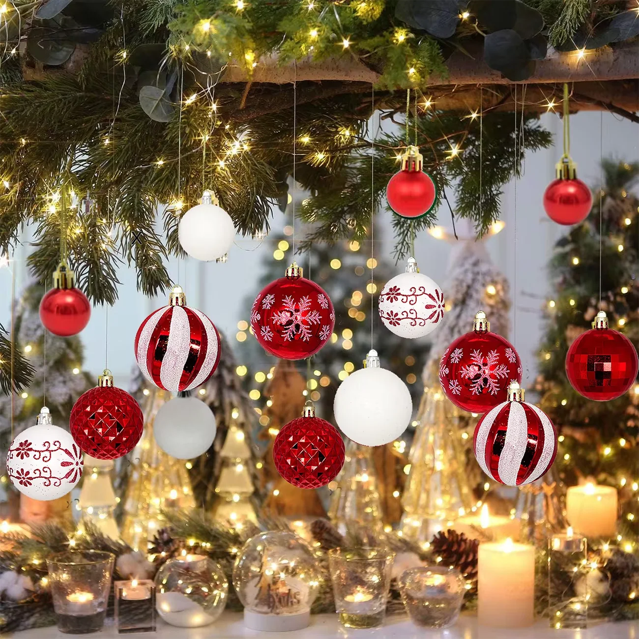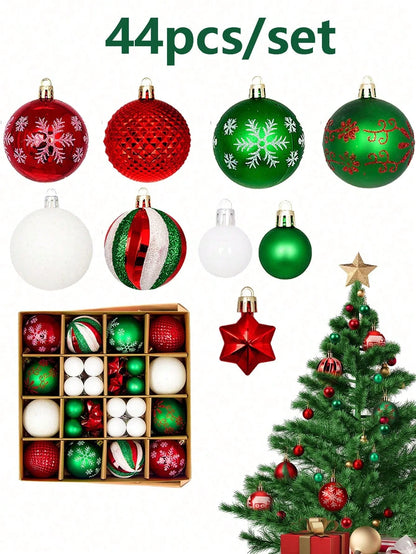 Enfeites de Natal - 44 Peças: Tamanhos de Bolas Inquebráveis (Vermelho, Verde e Branco)