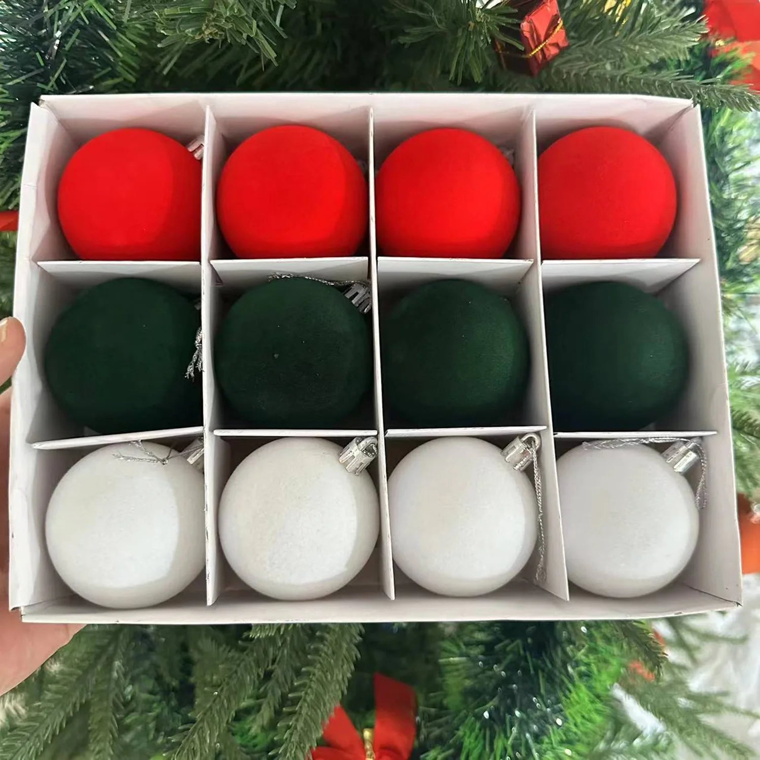 Enfeites de Natal de veludo | Bolas decorativas redondas de 12 peças | Decorações árvore
